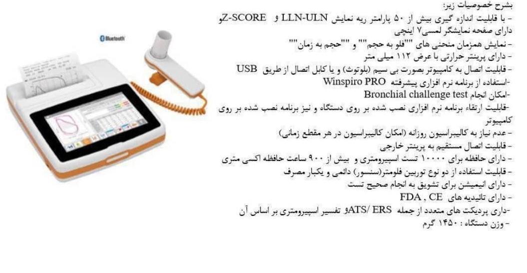 - قابلیت انجام تست اسپیرومتری بصورت PRE و POST و نیز اکسیمتری