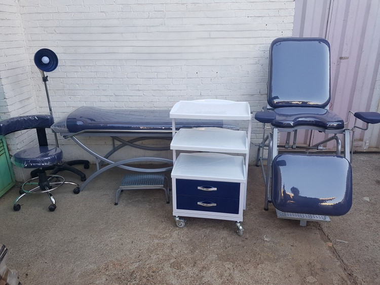 ست حرفهای مطب زنان و زایمان: تخت ژنیکولوژی + تخت معاینه + تابوره + چراغ معاینه+ ترالی+ پله
